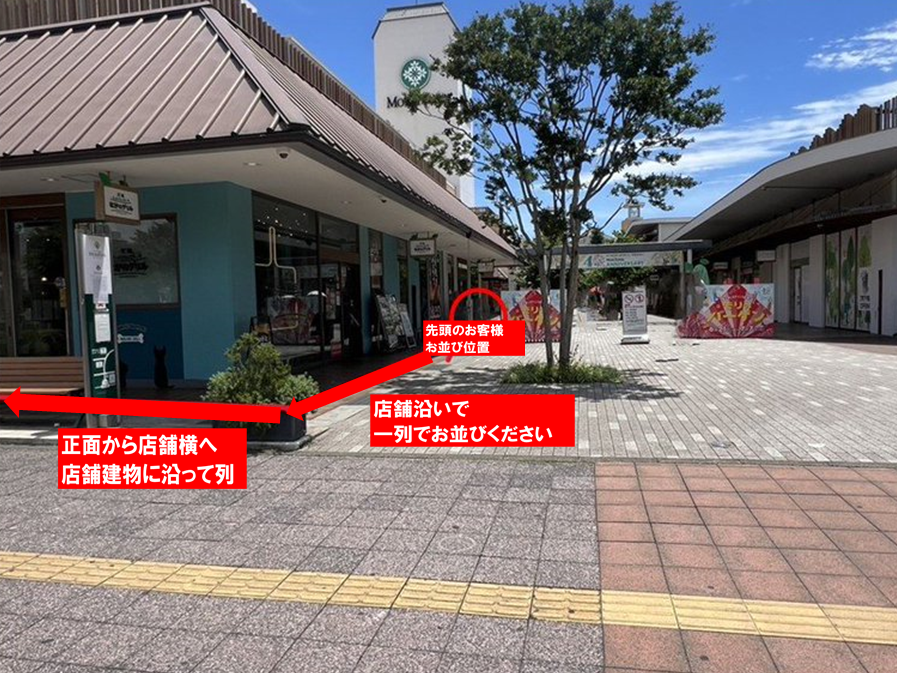 モリタウン正門(飲食店街門扉前)にお並びください。